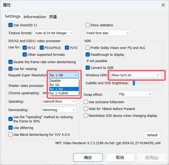 可参考链接:PotPlayer超分辨率(VSR)功能 让低画质视频更高清